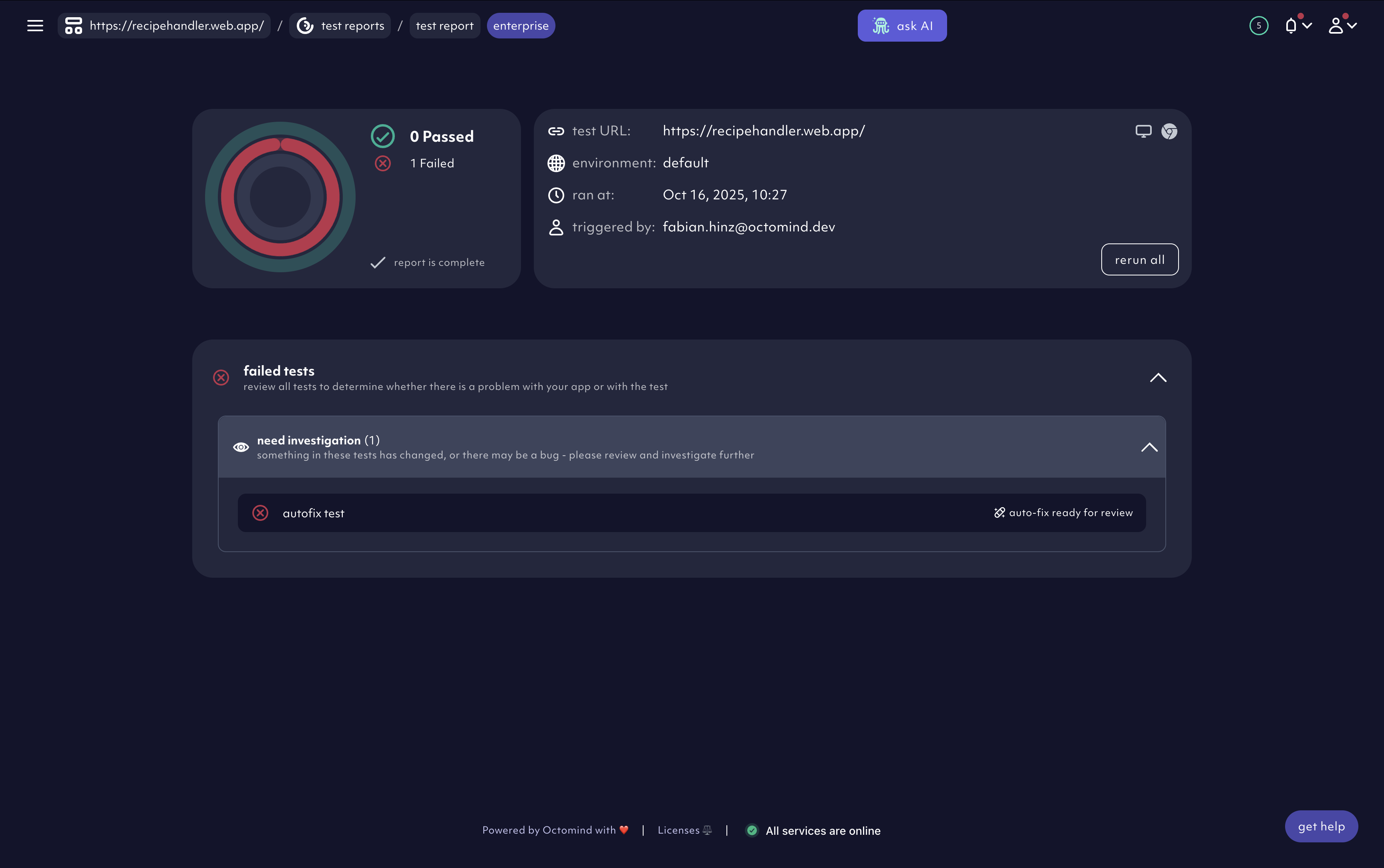 - If a test shows the ‘auto-fix ready for review’ label, a suggested fix is available